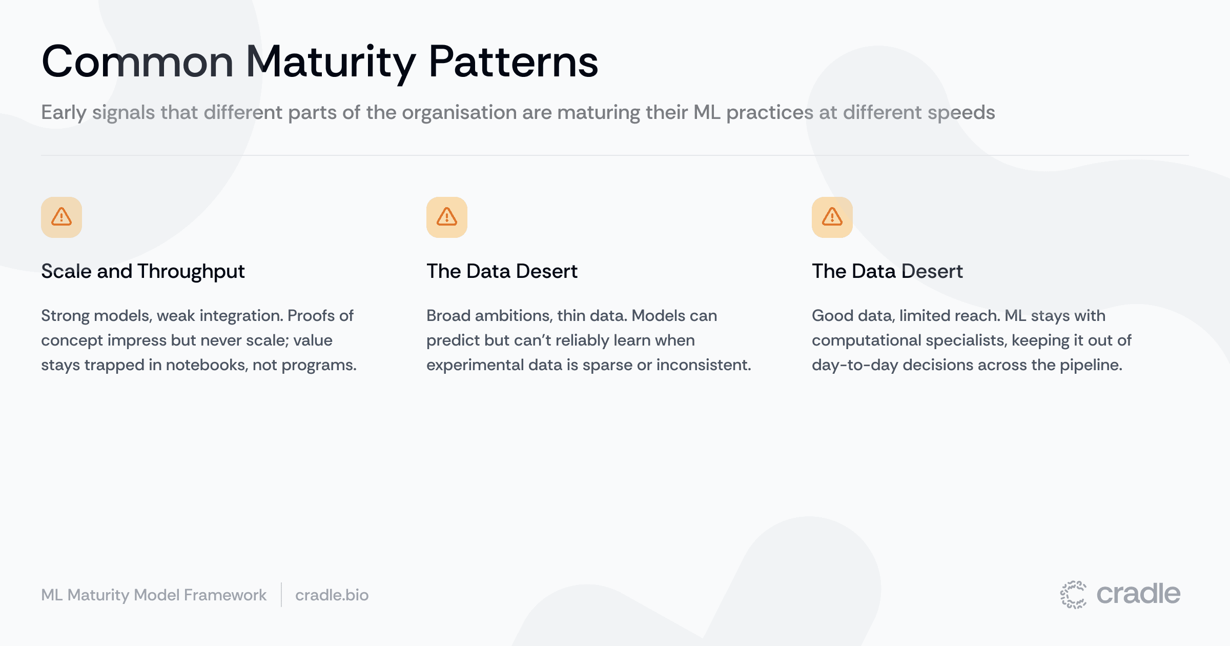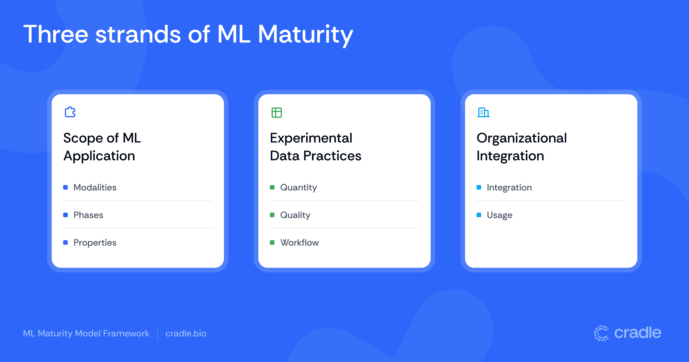 This handbook explores those strands. It shows what strong foundations look like in leading R&D organisations and highlights clear signals you can use to judge where you stand – supported by an interactive self-assessment tool later in the guide. The aim is to help you identify the most important next steps as you climb the ladder of ML maturity. Let’s dive in.
