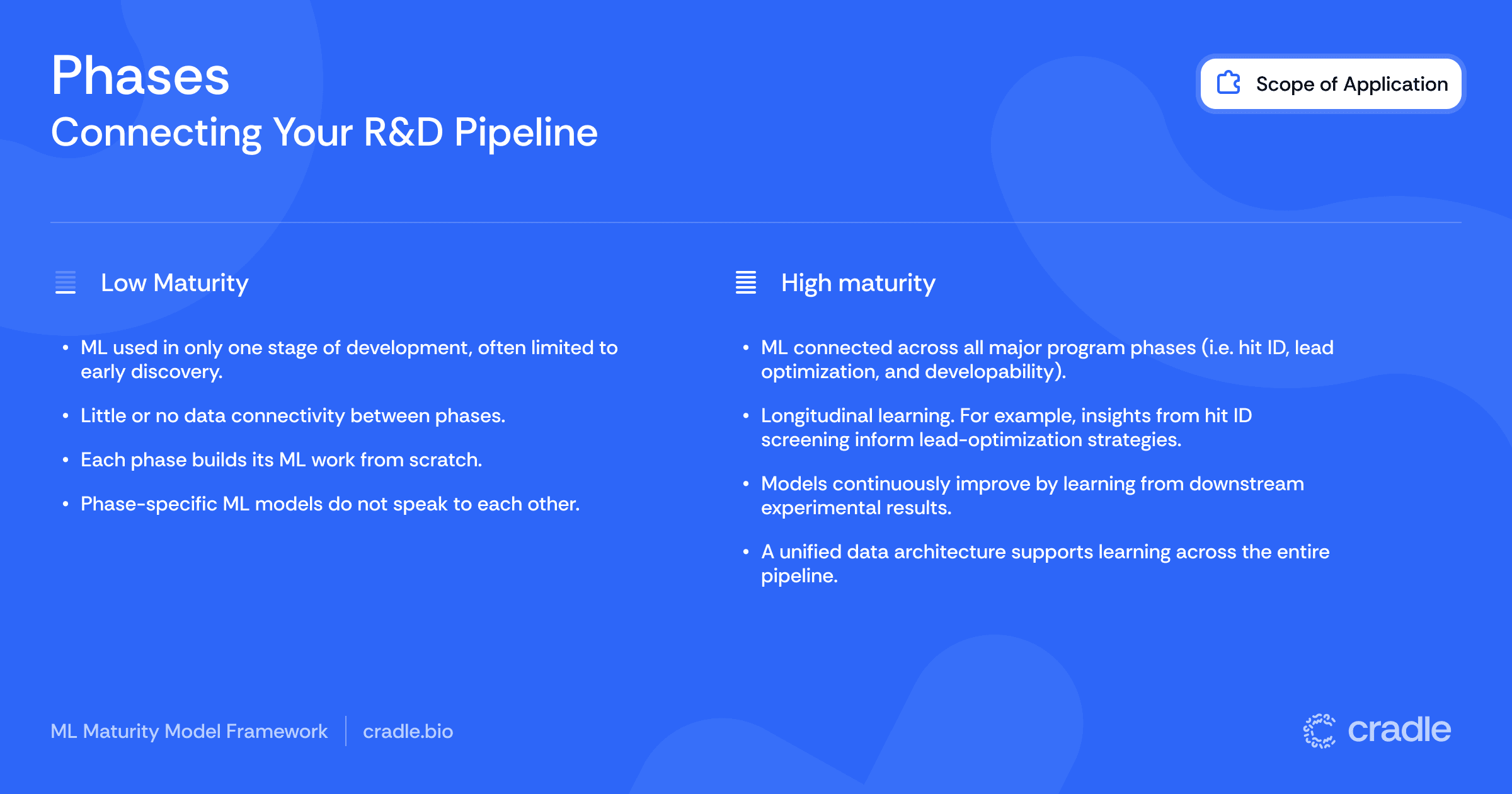 ML maturity reflects how well your systems link the phases of drug discovery and development, allowing insights from hit ID, lead optimization, and developability assessments to inform each other. It’s about creating a pipeline where models don’t just operate in isolated steps, but continuously build on what the science learns at every stage.